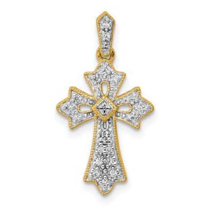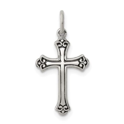 De-Ani Sterling Silver Rhodium-Plated Diamond-Cut Filigree Fleur de Lis Cross Pendant