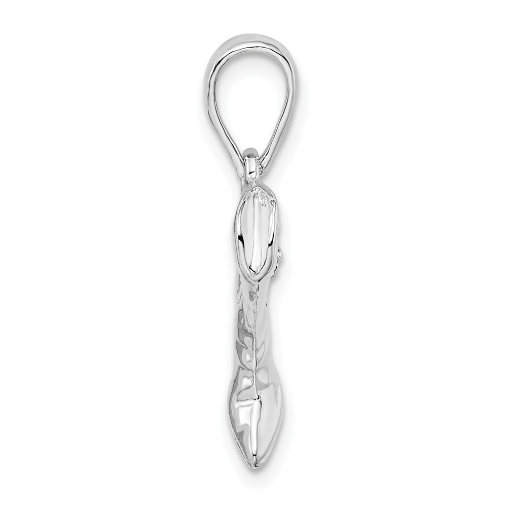 De-Ani Sterling Silver Rhodium-Plated Polished 3D Cowboy Boot Pendant