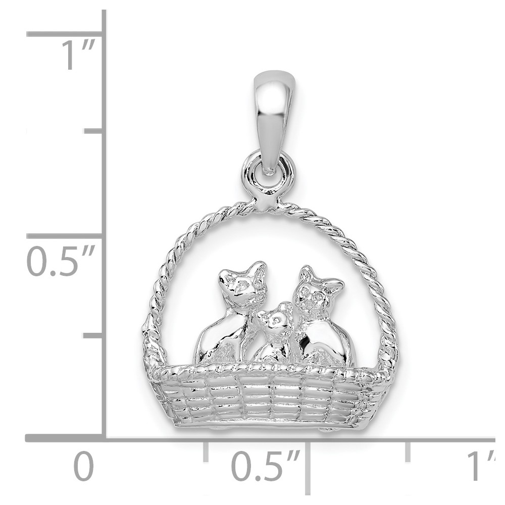 De-Ani Sterling Silver Rhodium-plated Polished 3D Kittens in Basket Pendant