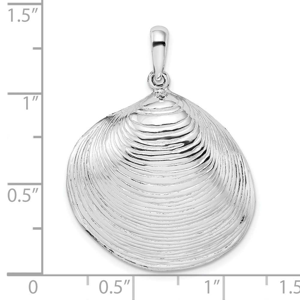 De-Ani Sterling Silver Rhodium-Plated Polished 3D Large Clam Shell Pendant