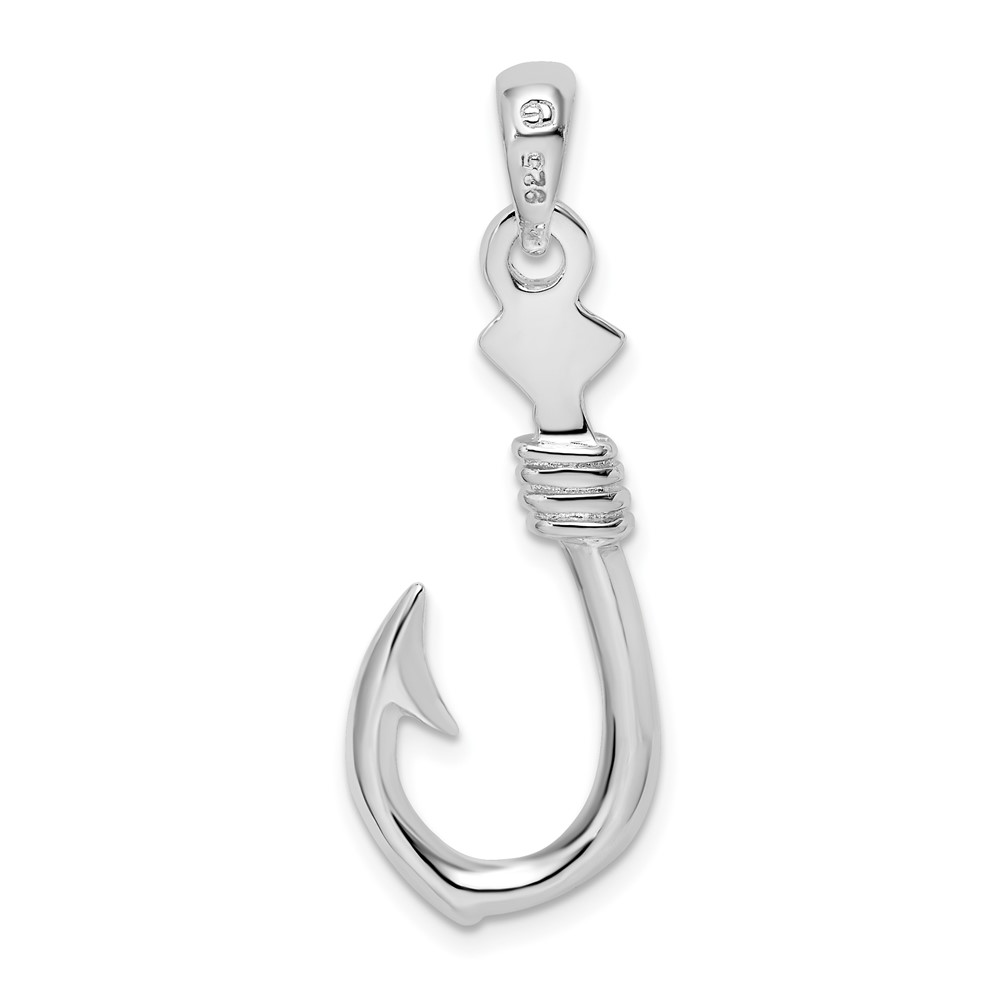 De-Ani Sterling Silver Rhodium-plated Polished 3D Large Fish Hook with Rope Pendant