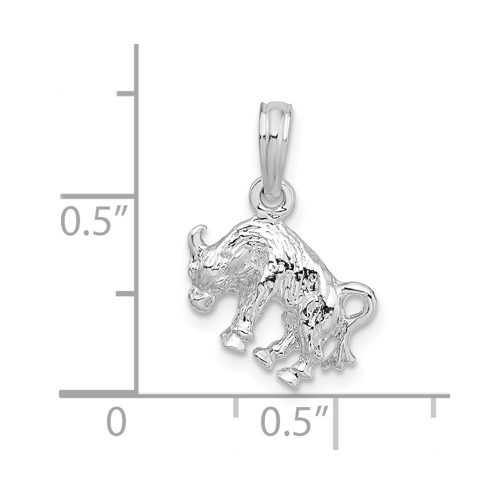 De-Ani Sterling Silver Rhodium-Plated Polished 3D Taurus Zodiac Pendant
