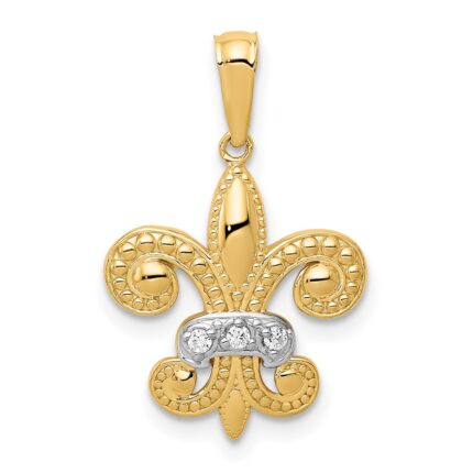 De-Ani Sterling Silver Rhodium-plated Polished and Textured Fleur de Lis Small Oval Pendant