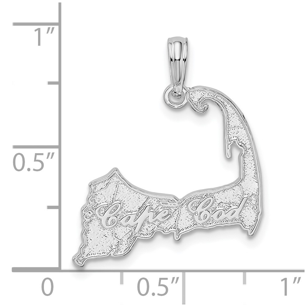 De-Ani Sterling Silver Rhodium-plated Polished Cape Cod Map Pendant
