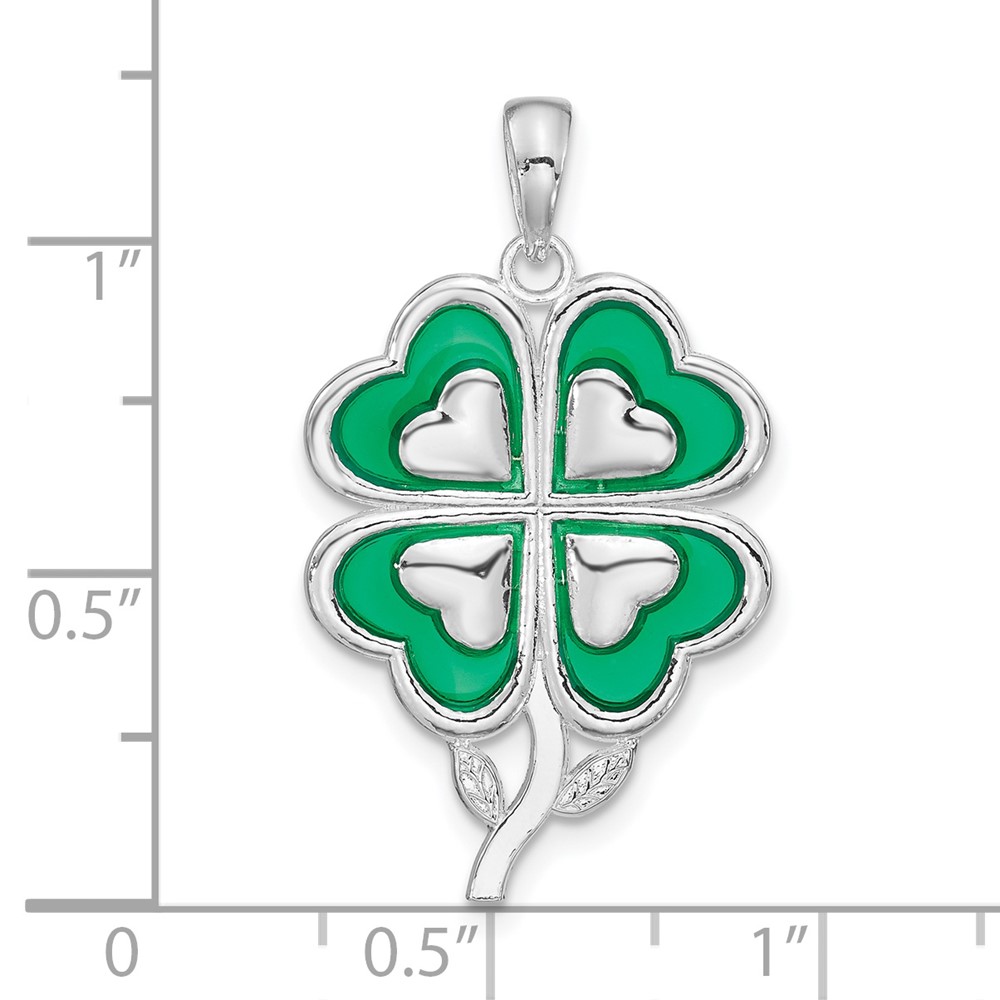 De-Ani Sterling Silver Rhodium-Plated Polished Enameled 4-Leaf Clover Pendant