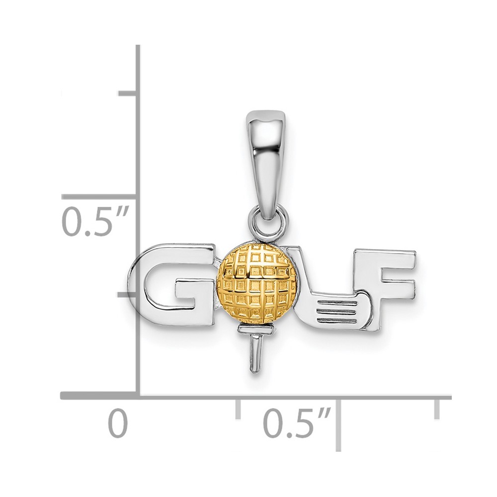 De-Ani Sterling Silver Rhodium-Plated Polished GOLF Tee with 14k Ball Pendant