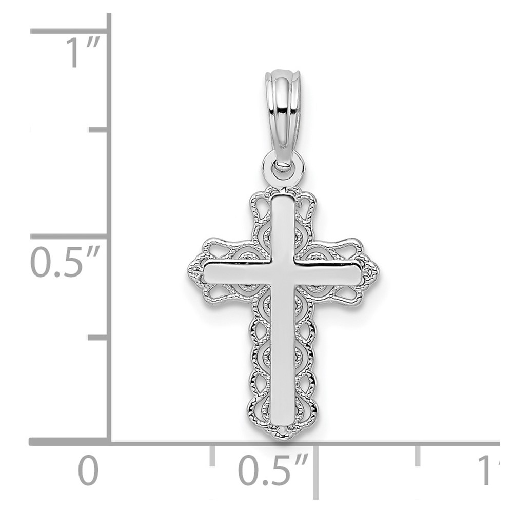 De-Ani Sterling Silver Rhodium-plated Polished Lace Trim Cross Pendant