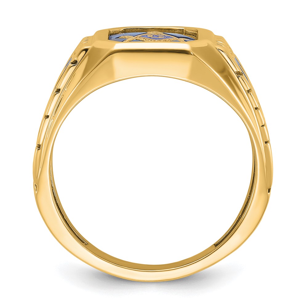 IBGoodman 10k Men’s Polished and Textured with Blue Enamel and Lab Created Sapphire Blue Lodge Master Masonic Ring