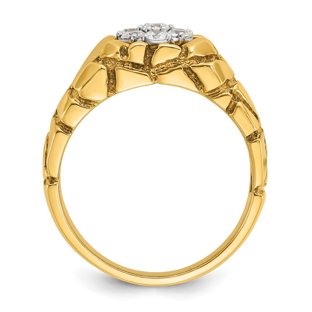 IBGoodman 10k Two-tone Men’s Polished and Nugget Textured Round 1/2 Carat A Quality Diamond Cluster Ring