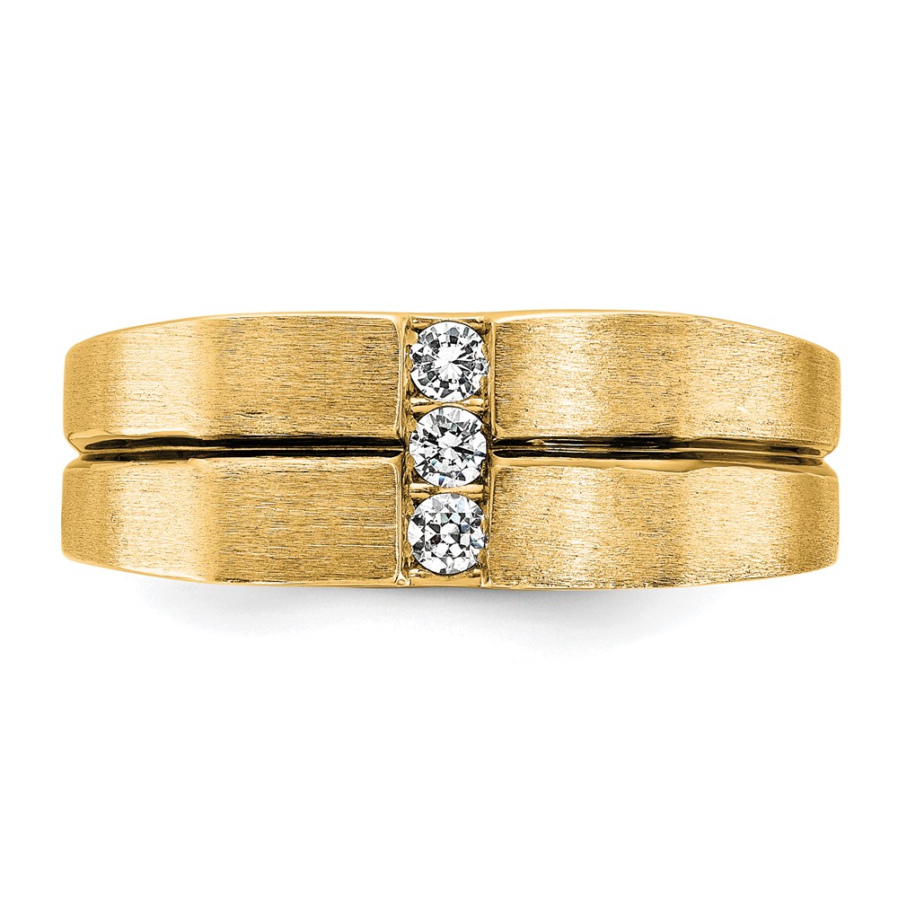 IBGoodman 10k White Gold with Black Rhodium Men’s Satin and Grooved 3-Stone 1/5 Carat A Quality Diamond Ring