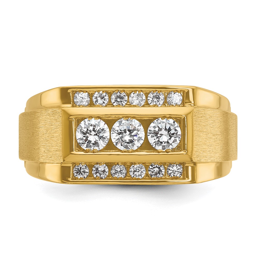 IBGoodman 14k Men’s Polished and Satin 3-Row 3/4 Carat AA Quality Diamond Ring