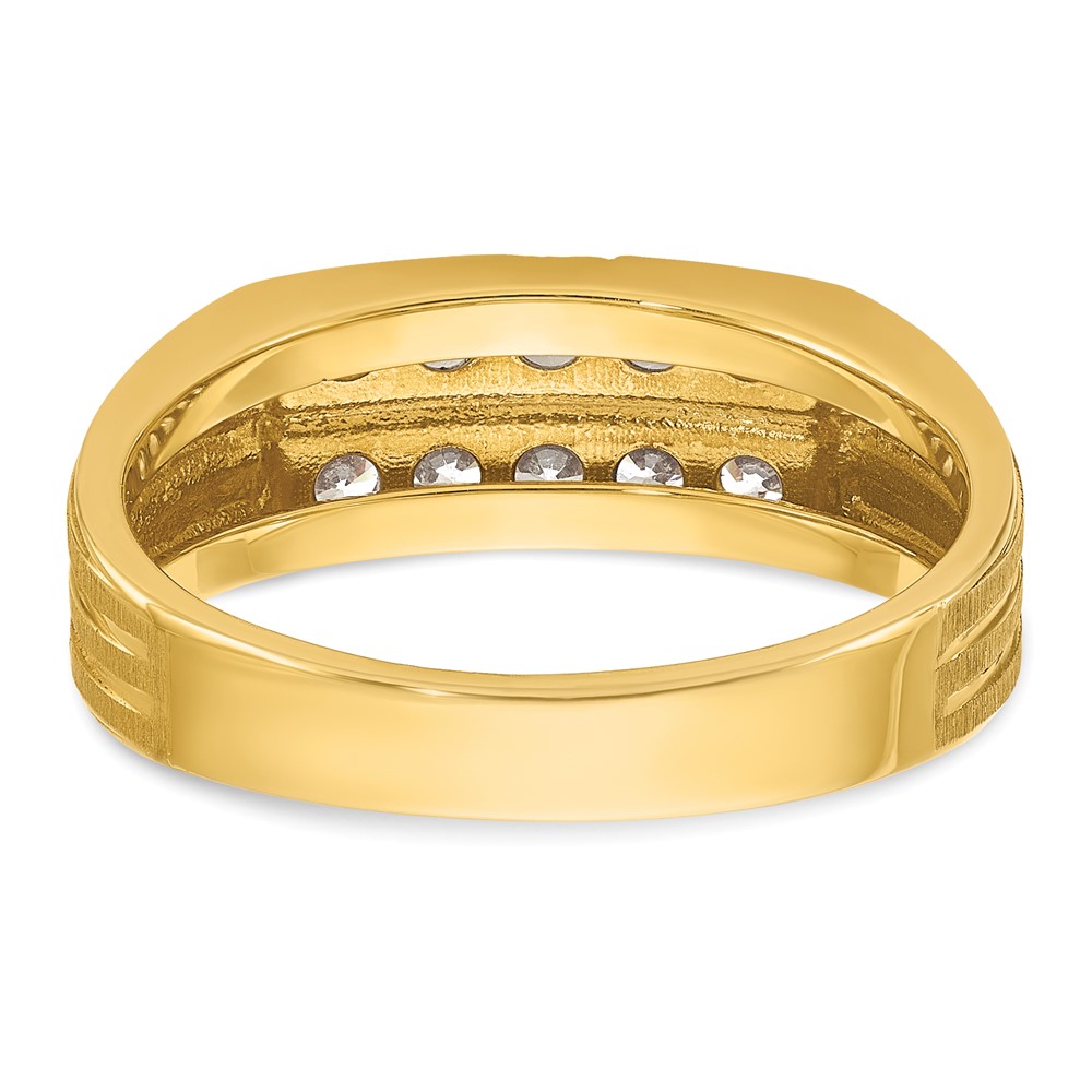 IBGoodman 14k Men’s Polished Satin and Grooved 2-Row 5/8 Carat AA Quality Diamond Ring