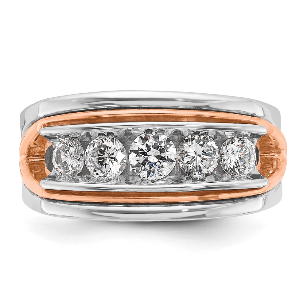 IBGoodman 14k Rose and White Gold Men’s Polished Cut-Out 5-Stone 1 Carat AA Quality Diamond Ring