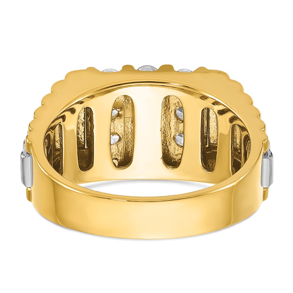 IBGoodman 14k Two Tone 1 carat Lab Grown Diamond VS/SI+ G+ Complete Grooved Four Row Men’s Ring