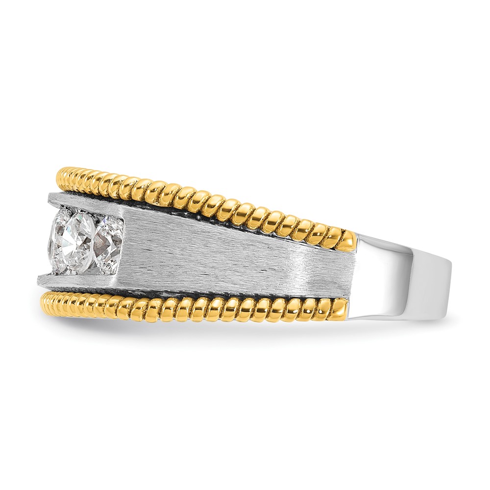 IBGoodman 14k Two-tone 1 carat Lab Grown Diamond VS/SI+ G+ Five Stone Complete Polished Satin and Textured Men’s Ring