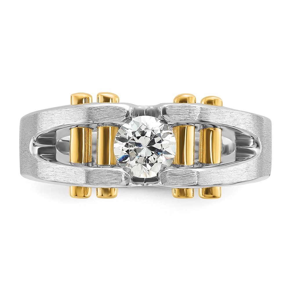 IBGoodman 14k Two-Tone 3/8 carat Lab Grown Diamond VS/SI+ G+ Polished and Satin Cut-Out Solitaire Complete Men’s Ring