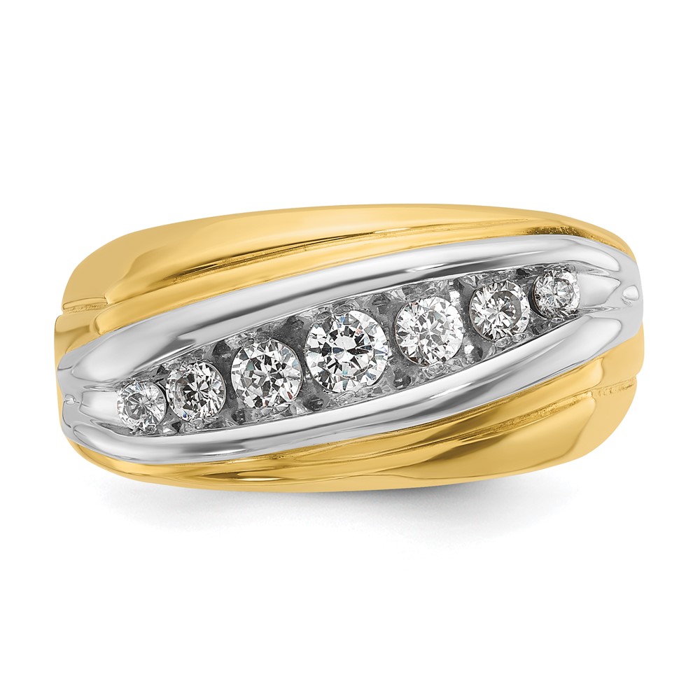 IBGoodman 14k Two-tone Men’s Polished and Grooved Graduated 7-Stone 1/2 Carat AA Quality Diamond Ring