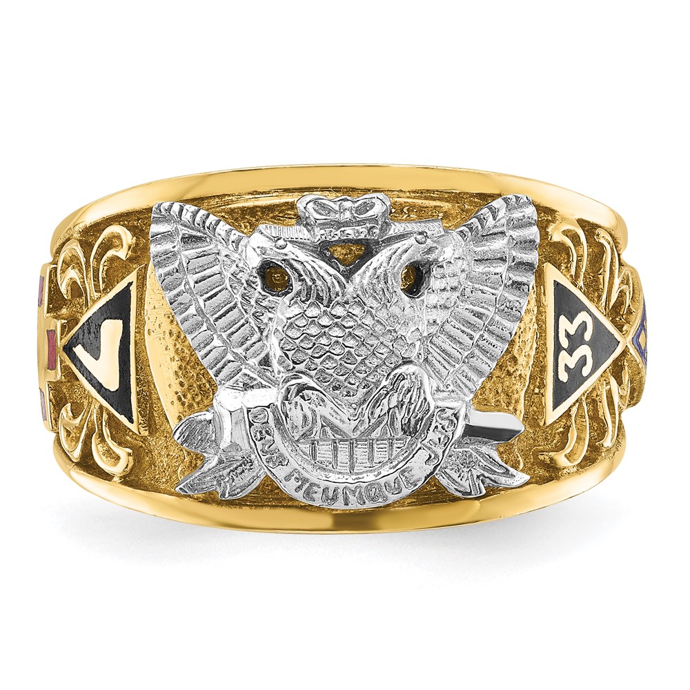 IBGoodman 14k Two-tone Men’s Polished and Textured with Multi-color Enamel Active 33rd Degree Masonic Ring