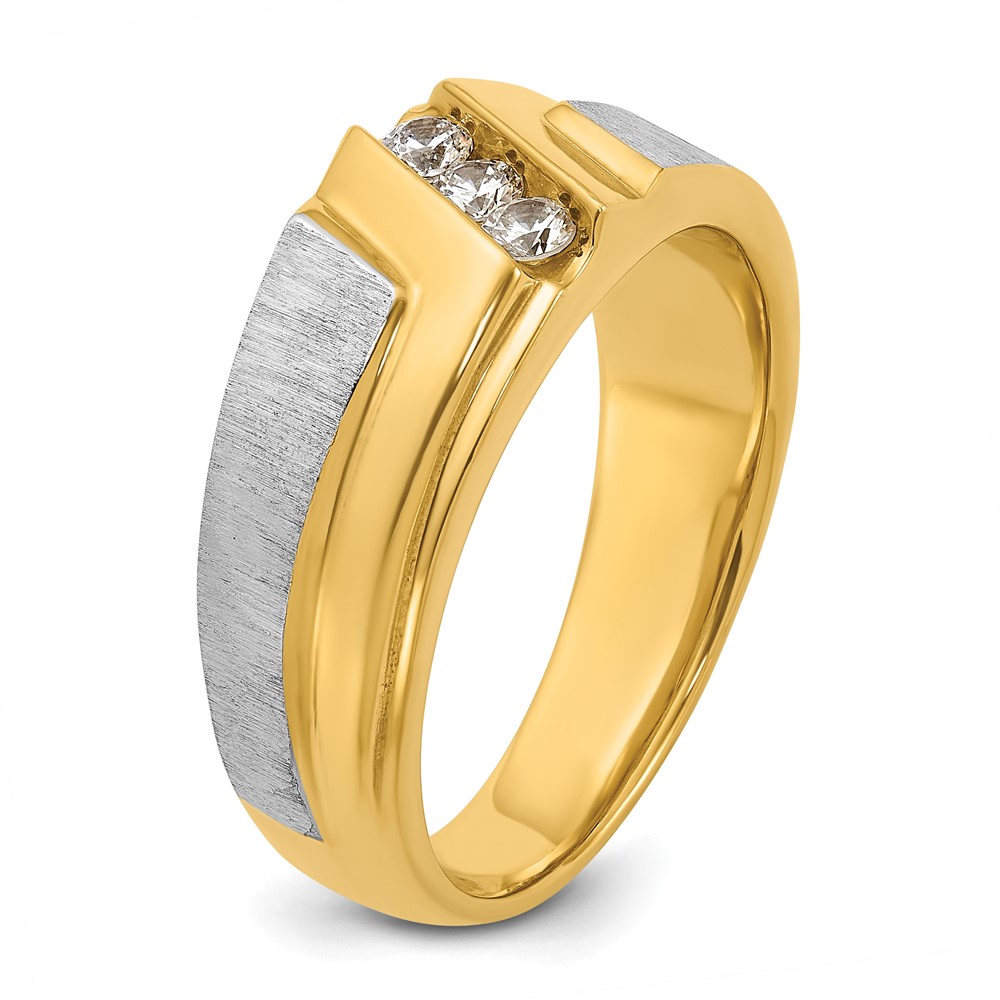 IBGoodman 14k Two-tone Men’s Polished and Satin 3-Stone 1/2 Carat AA Quality Diamond Ring