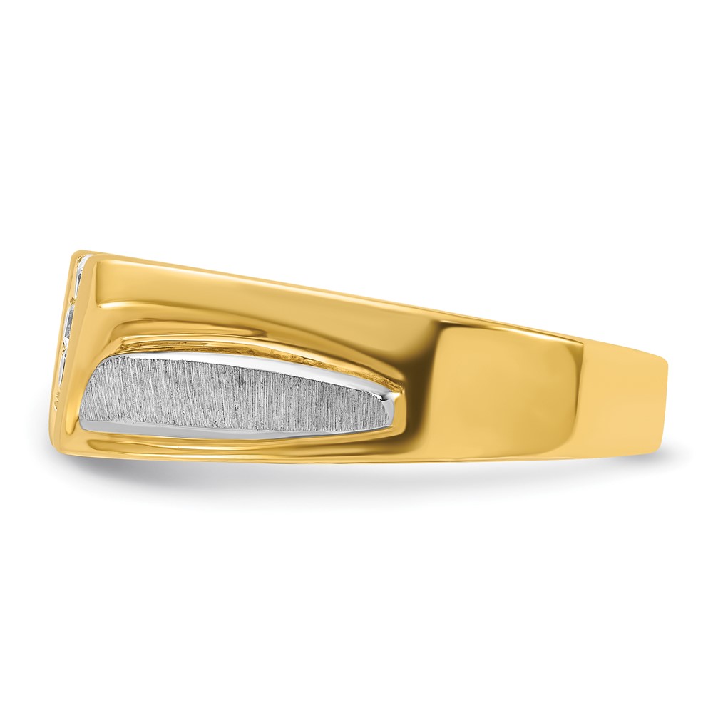 IBGoodman 14k Two-tone Men’s Polished Satin and Grooved 4-Stone 1/4 Carat AA Quality Diamond Ring