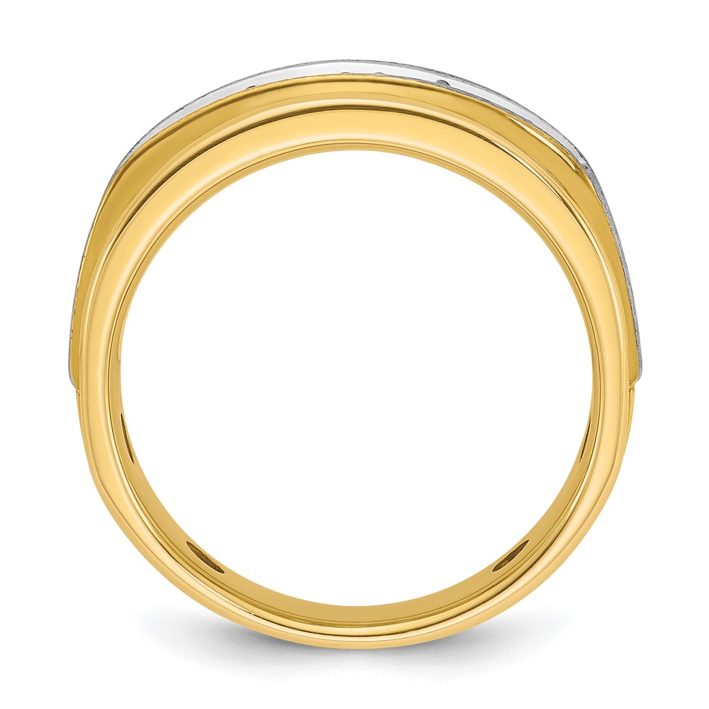 IBGoodman 14k Two-tone Men’s Polished Satin and Grooved 5-Stone 1 Carat AA Quality Diamond Ring