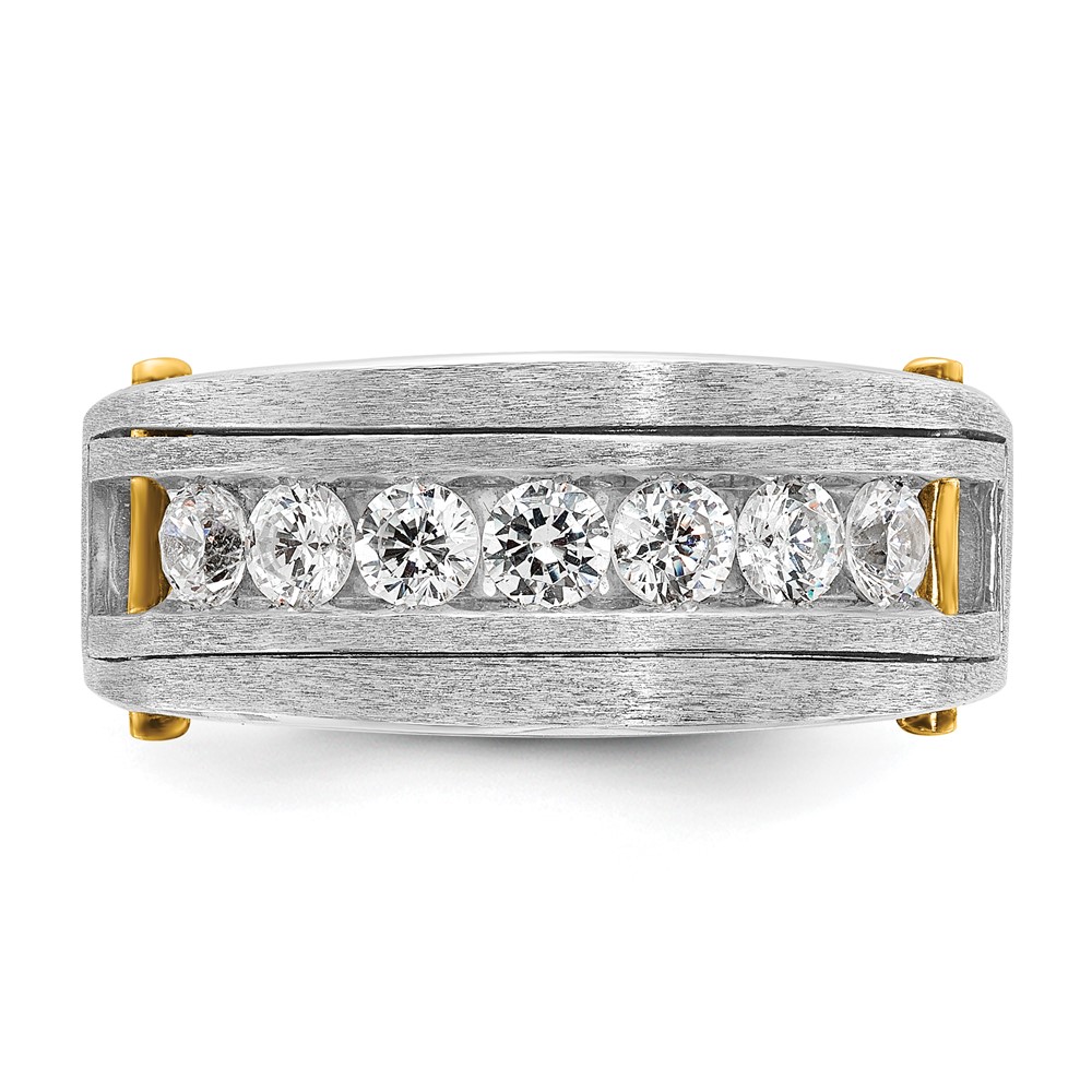 IBGoodman 14k Two-tone Men’s Polished Satin and Grooved 7-Stone 1 Carat AA Quality Diamond Ring