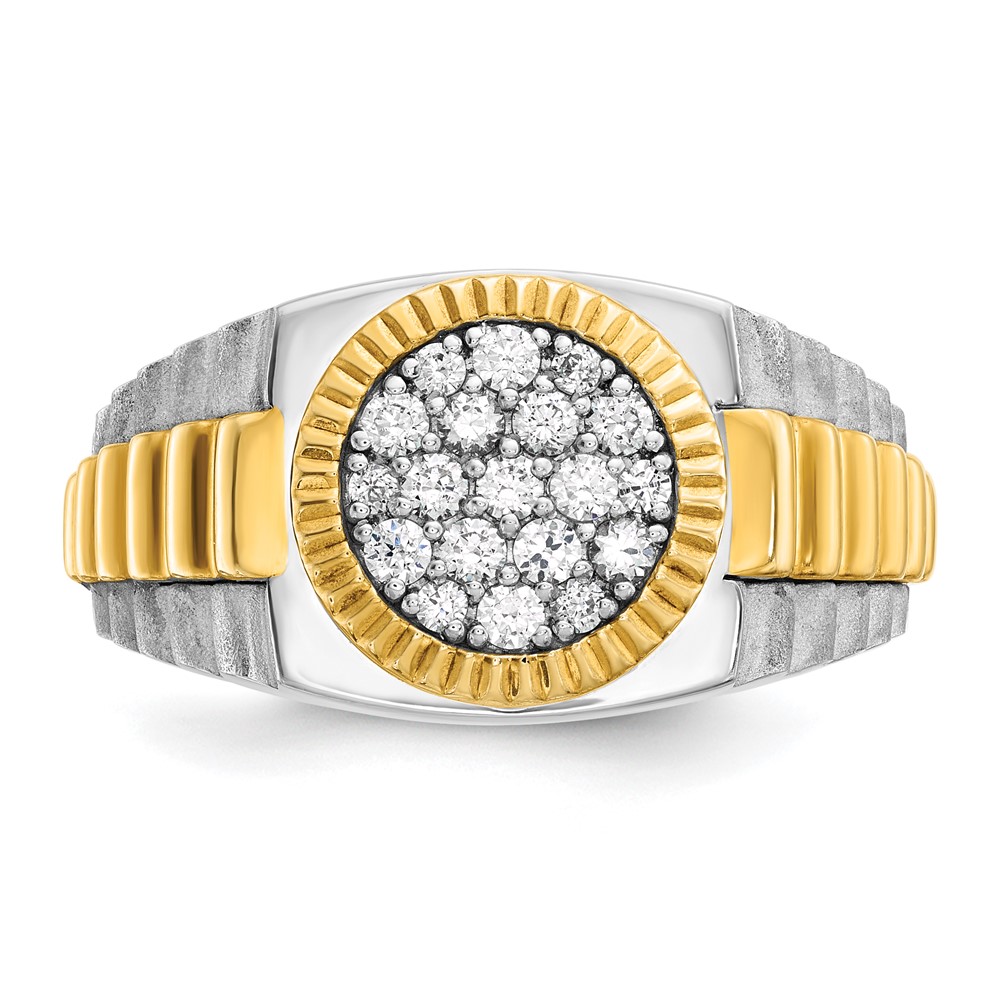IBGoodman 14k Two-tone Men’s Polished Satin and Ribbed Round Cluster Ring Mounting