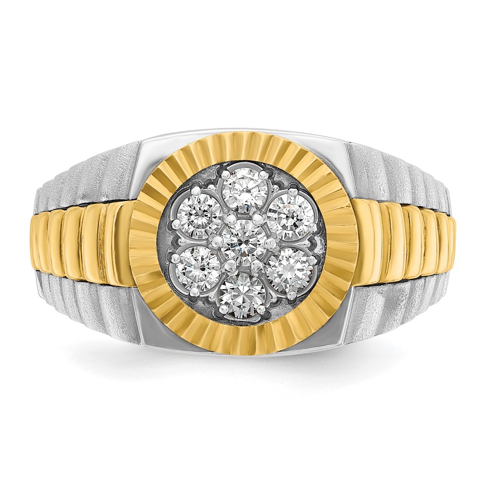 IBGoodman 14k Two-tone Men’s Polished Satin and Textured 1/2 Carat AA Quality Diamond Cluster Ring