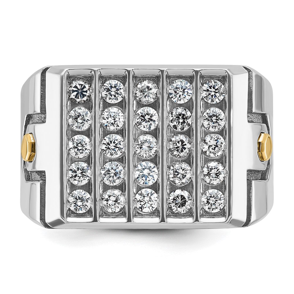 IBGoodman 14k Two-tone with Black Rhodium Men’s Polished and Grooved 5-Row 1 3/4 Carat AA Quality Diamond Cluster Ring