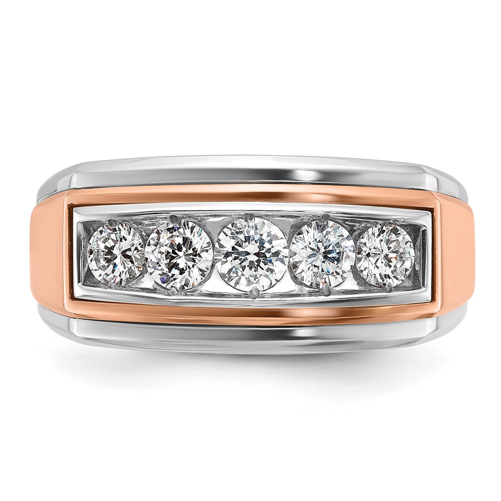 IBGoodman 14k White and Rose Gold Men’s Polished and Grooved 5-Stone Ring Mounting