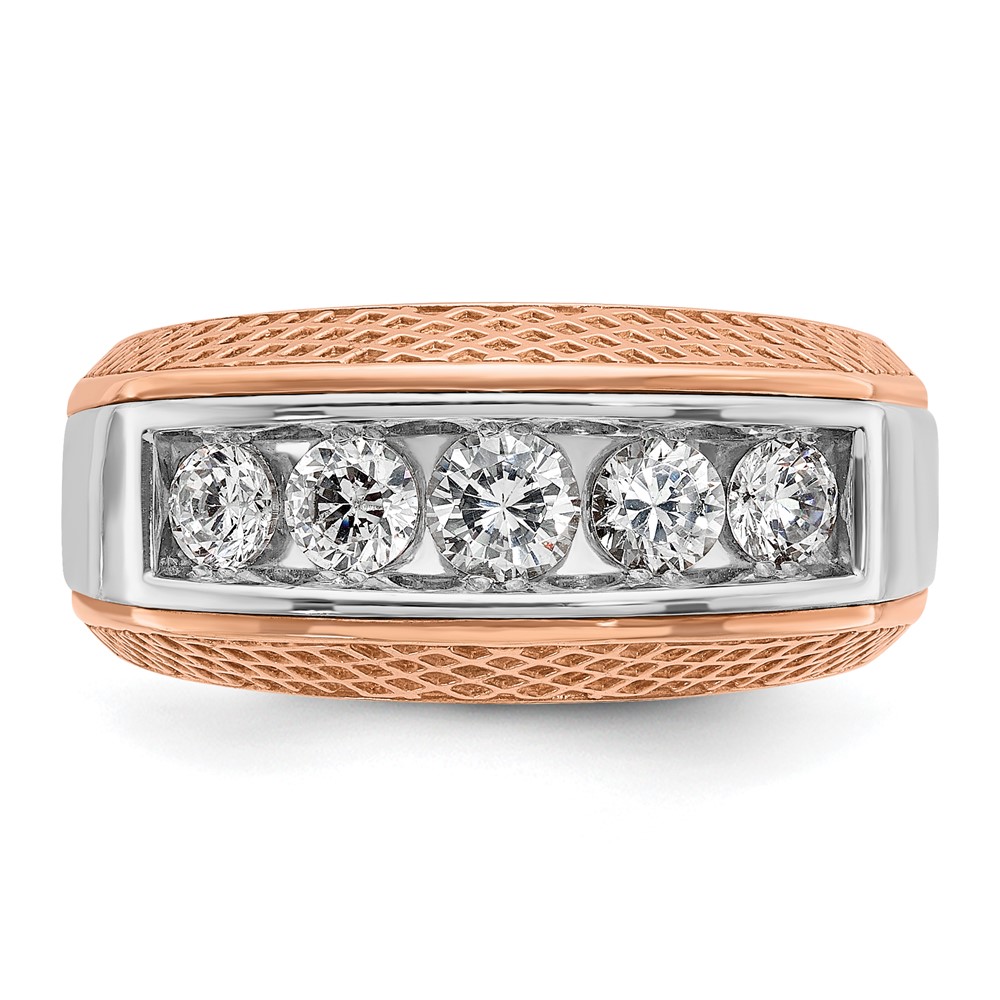 IBGoodman 14k White and Rose Gold Men’s Polished and Textured 5-Stone Ring Mounting