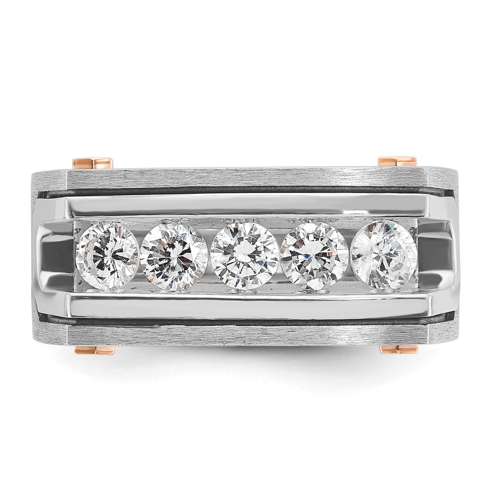 IBGoodman 14k White and Rose Gold with Black Rhodium Men’s Polished Satin and Grooved 5-Stone 1 Carat AA Quality Diamond Ring