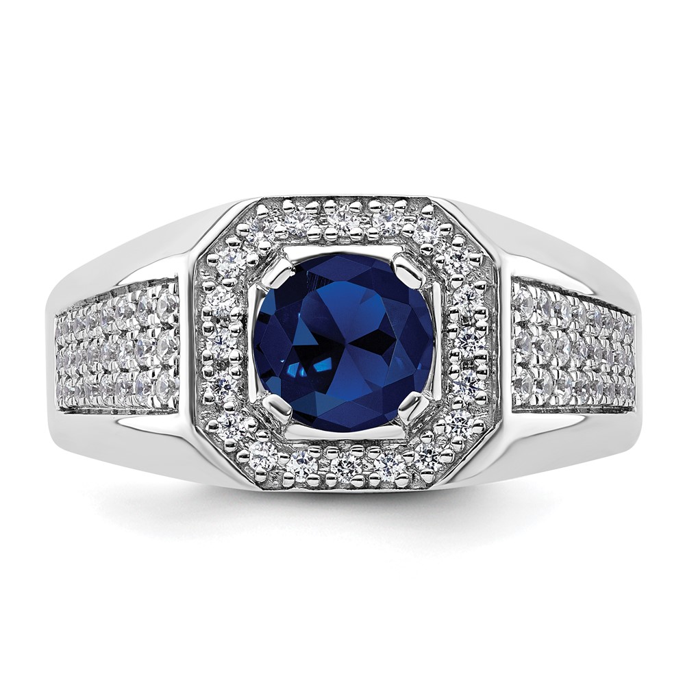 IBGoodman 14k White Gold 1/2 carat Lab Grown Diamond VS/SI+ G+ and Created Blue Sapphire Complete Men’s Ring