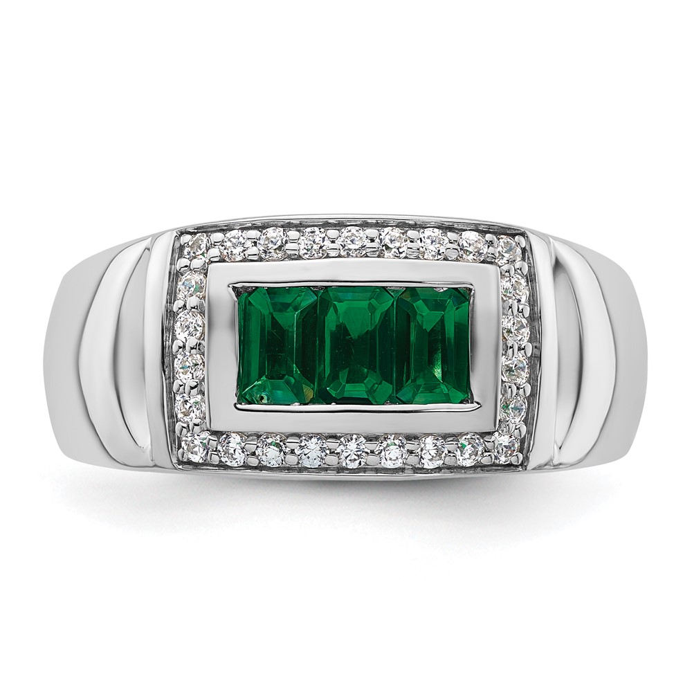 IBGoodman 14k White Gold 1/3 carat Lab Grown Diamond VS/SI+ G+ and Created Emerald Complete Men’s Ring