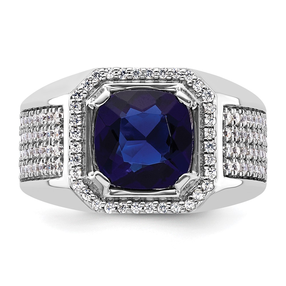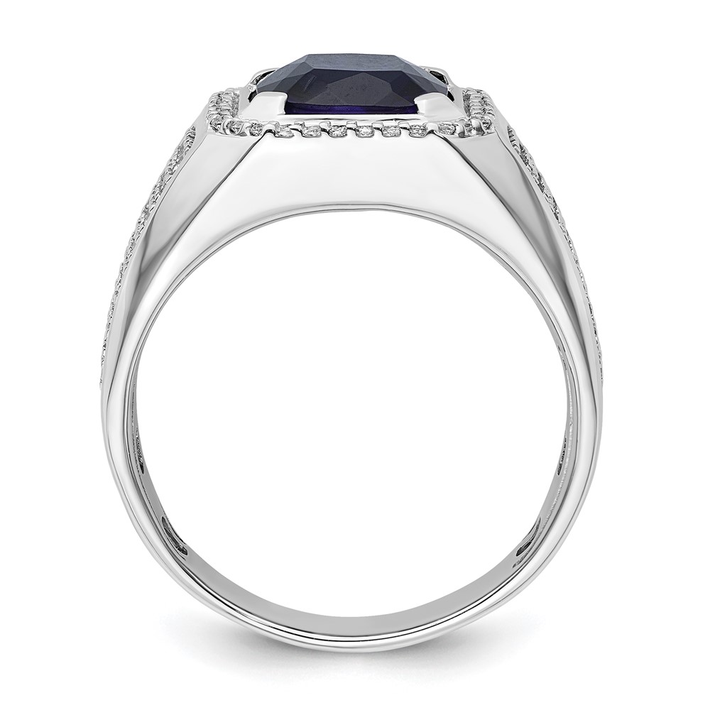 IBGoodman 14k White Gold 7/8 carat Lab Grown Diamond VS/SI+ G+ and Created Blue Sapphire Complete Men’s Ring