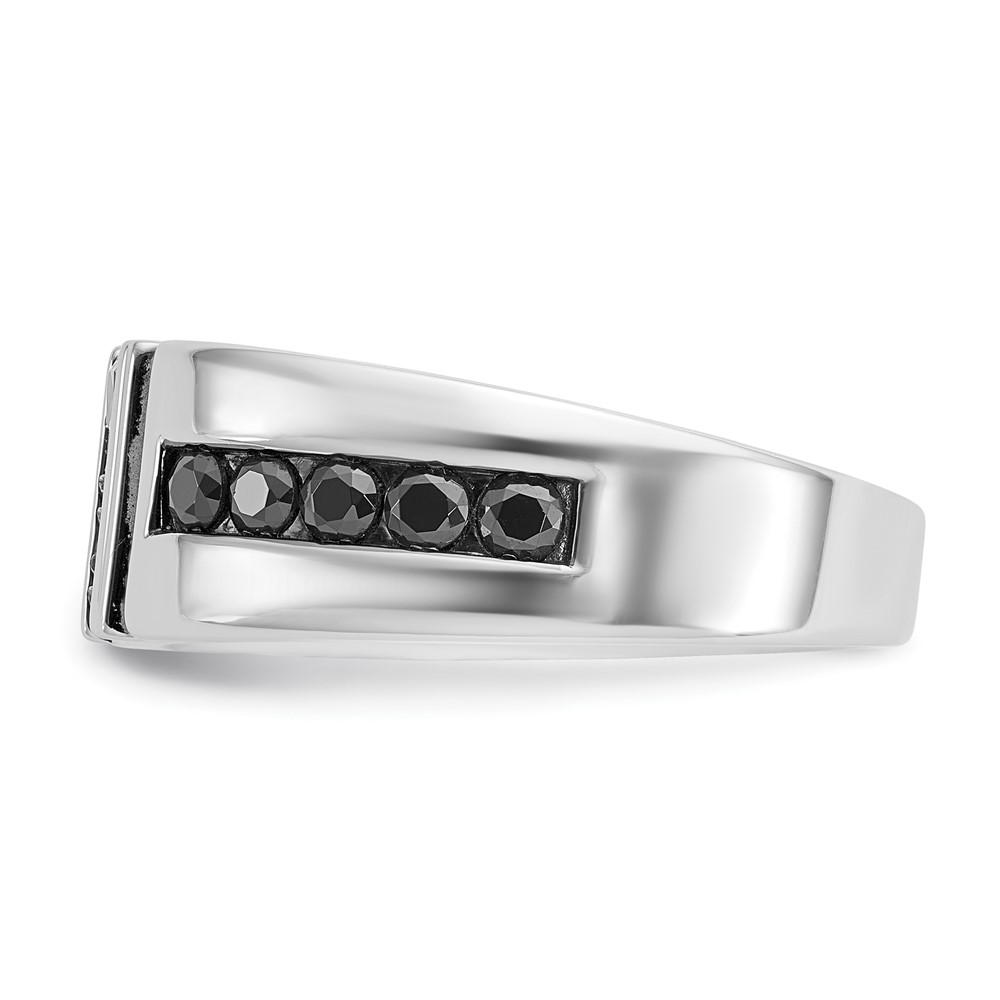 IBGoodman 14k White Gold Men’s Polished and Grooved Black and White 1 Carat AA Quality Diamond Ring