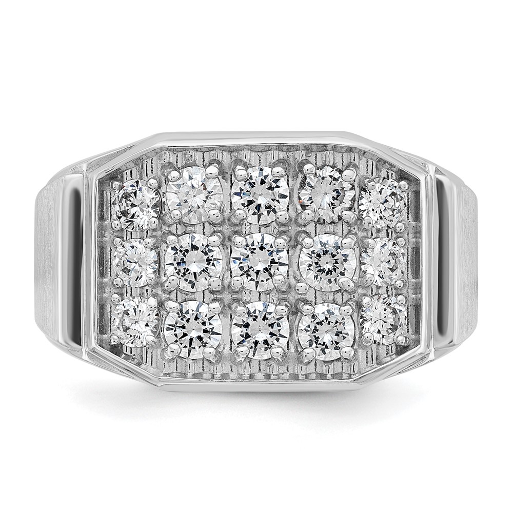 IBGoodman 14k White Gold Men’s Polished and Satin 1 1/5 Carat AA Quality Diamond Cluster Ring