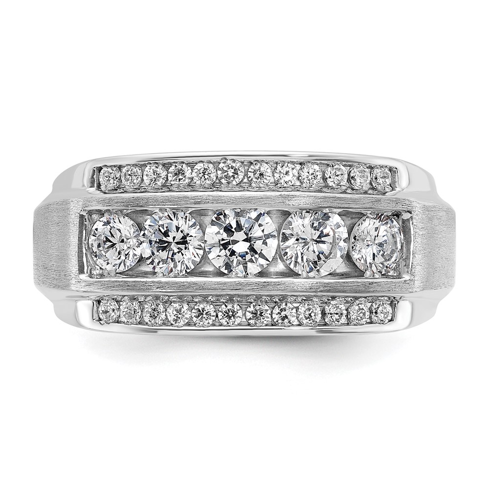 IBGoodman 14k White Gold Men’s Polished and Satin 3-Row 2 1/8 Carat AA Quality Diamond Ring
