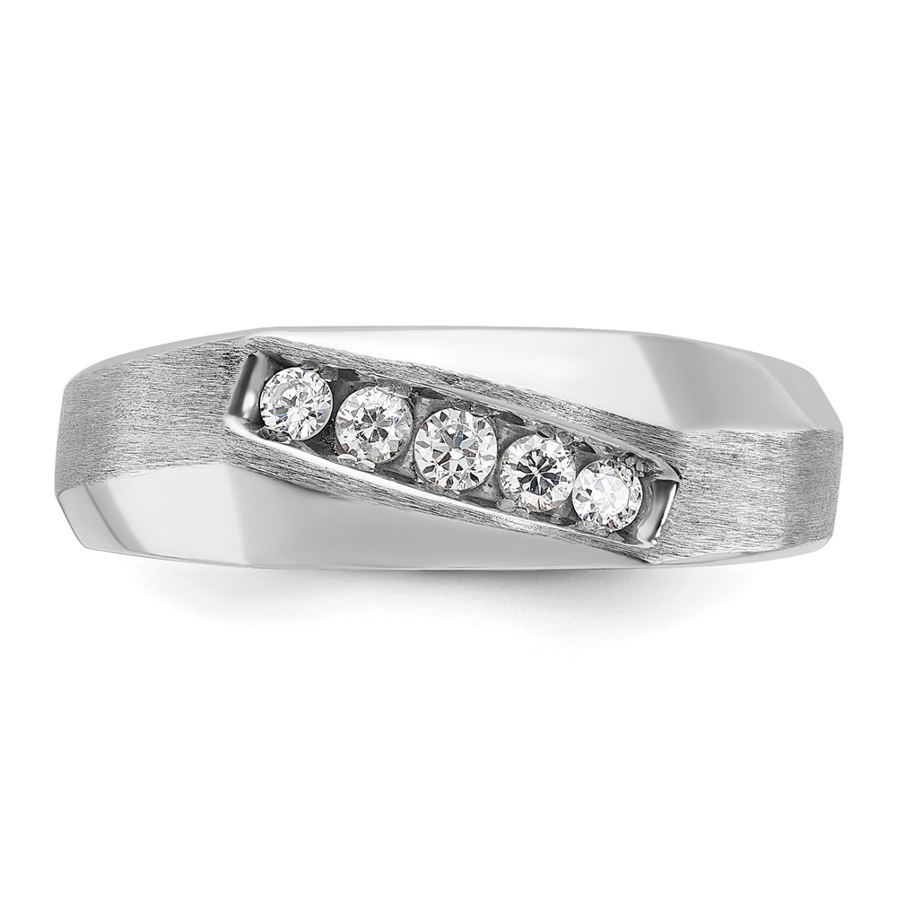 IBGoodman 14k White Gold Men’s Polished and Satin 5-Stone 1/4 Carat AA Quality Diamond Ring