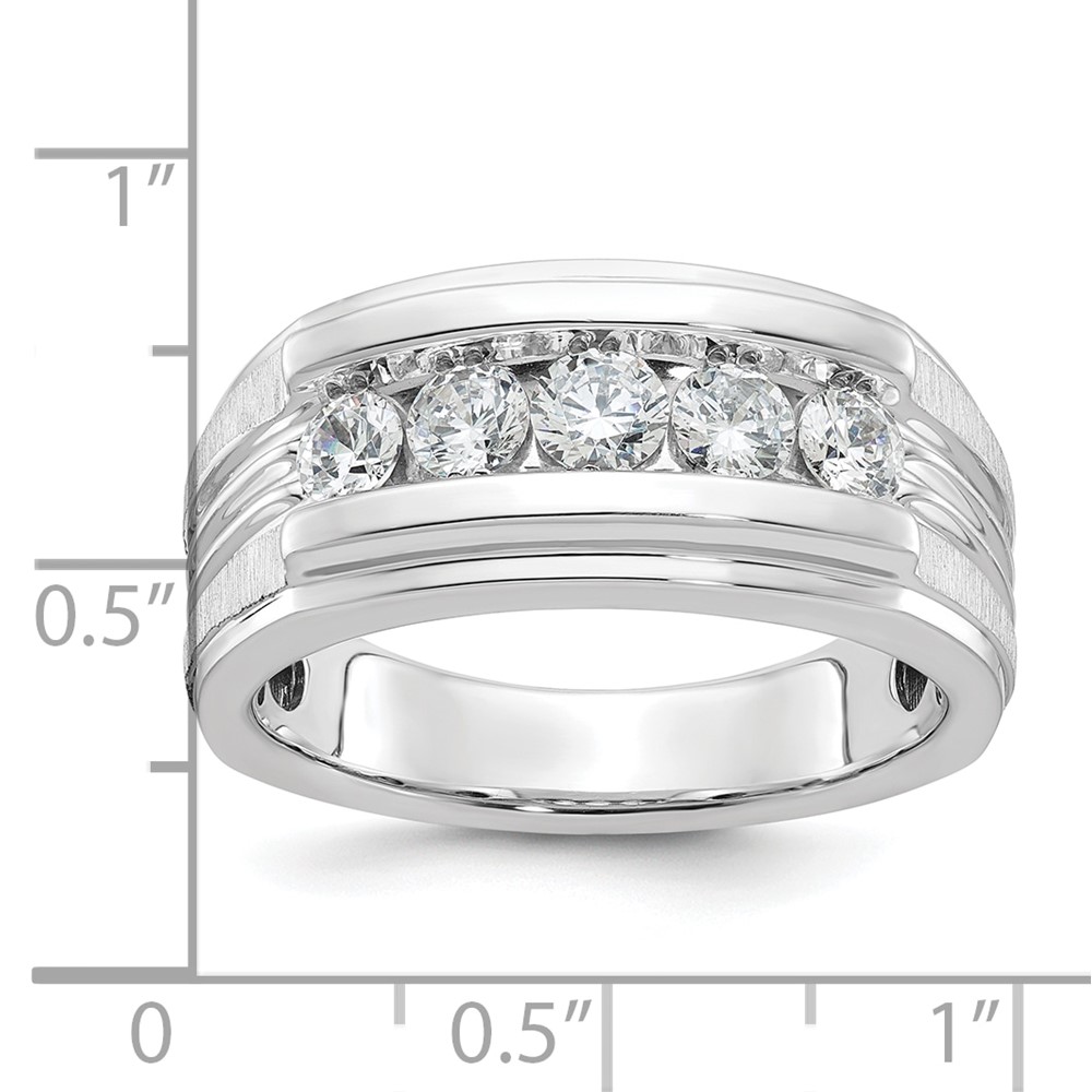 IBGoodman 14k White Gold Men’s Polished Brushed and Grooved 5-Stone 1 Carat AA Quality Diamond Ring