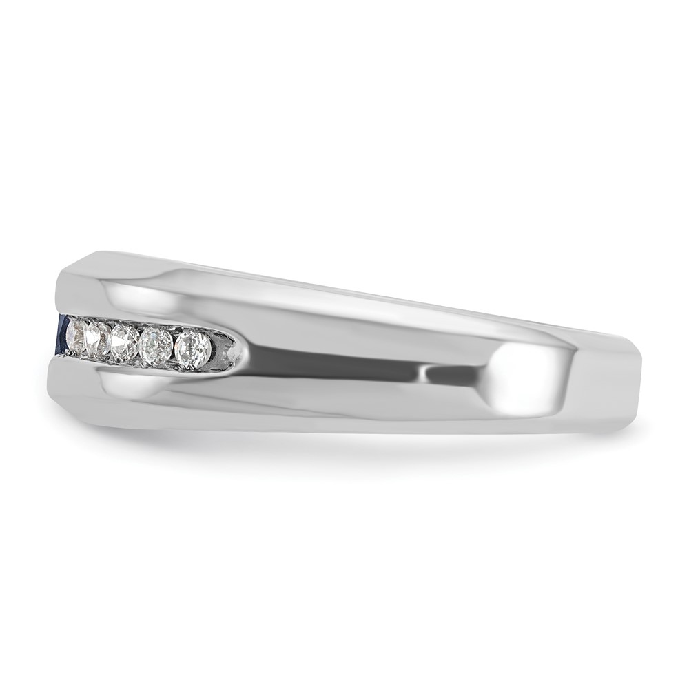 IBGoodman 14k White Gold Men’s Polished Lab Created Sapphire and 1/5 Carat AA Quality Diamond Ring
