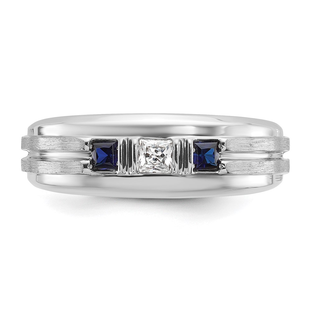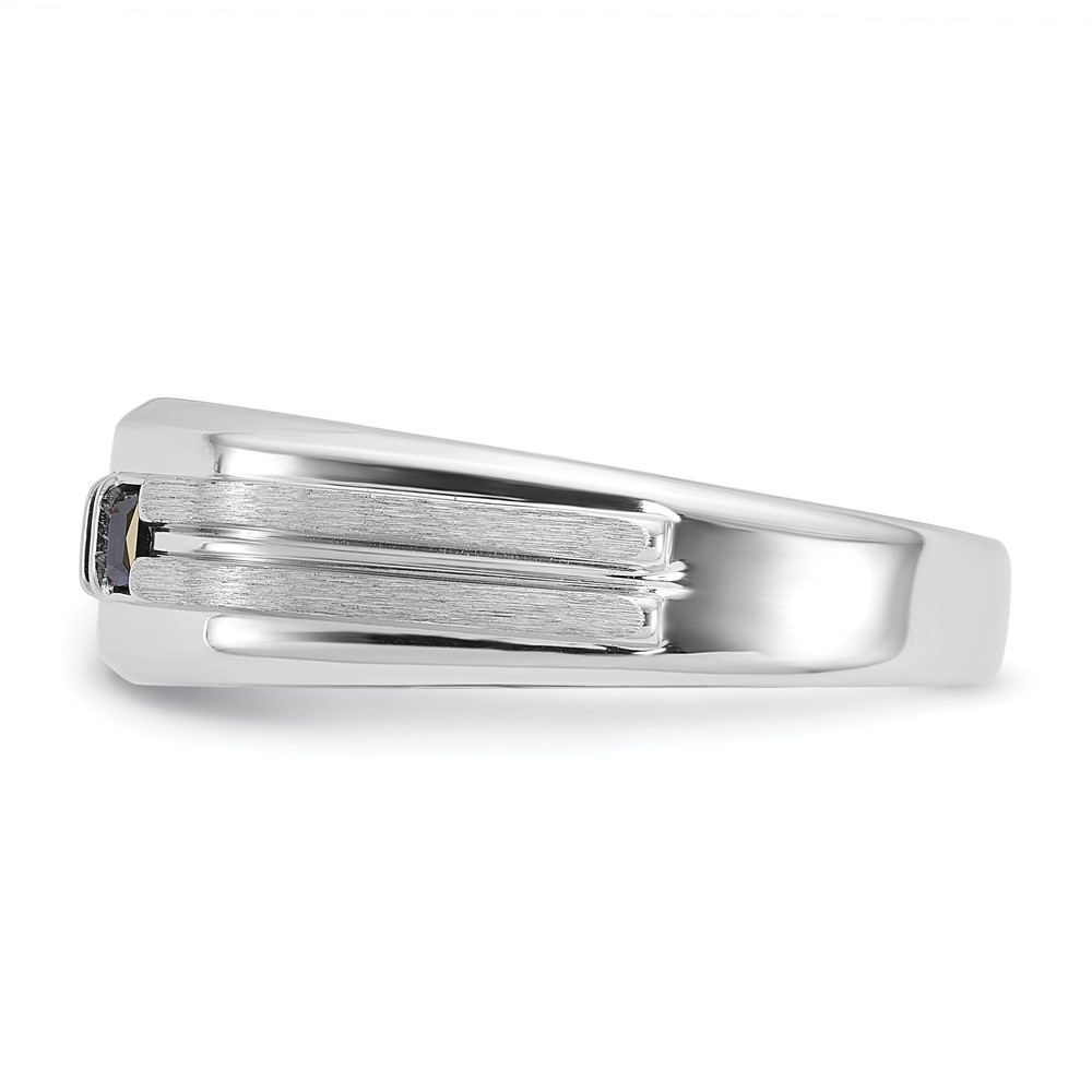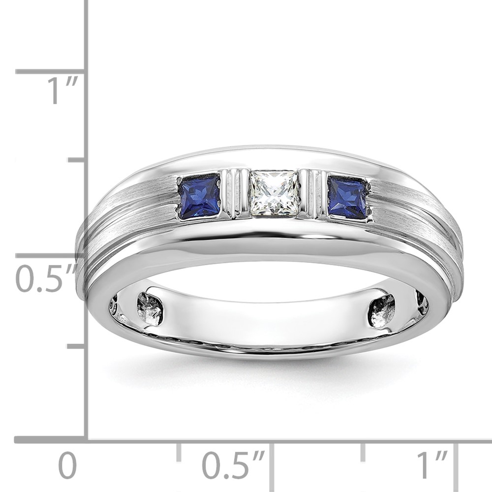 IBGoodman 14k White Gold Men’s Polished Satin and Grooved Square 1/6 Carat AA Quality Diamond and Lab Created Sapphire 3-Stone Ring
