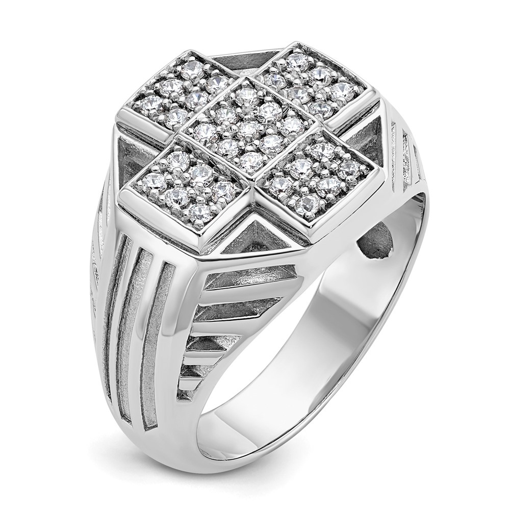 IBGoodman 14k White Gold Men’s Polished Textured and Grooved 1/2 Carat AA Quality Diamond Cross Cluster Ring