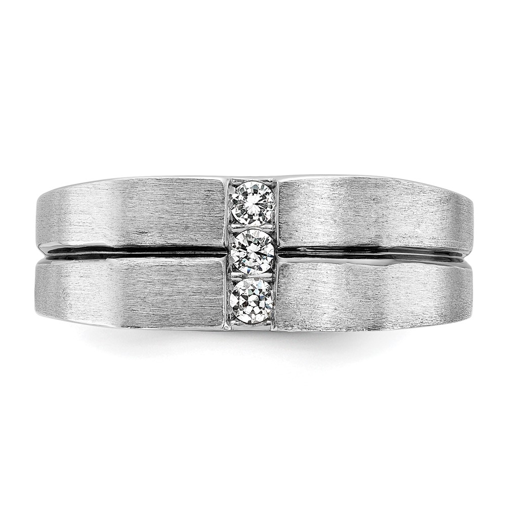 IBGoodman 14k White Gold Polished Satin and Grooved Five Stone Men’s Ring Mounting