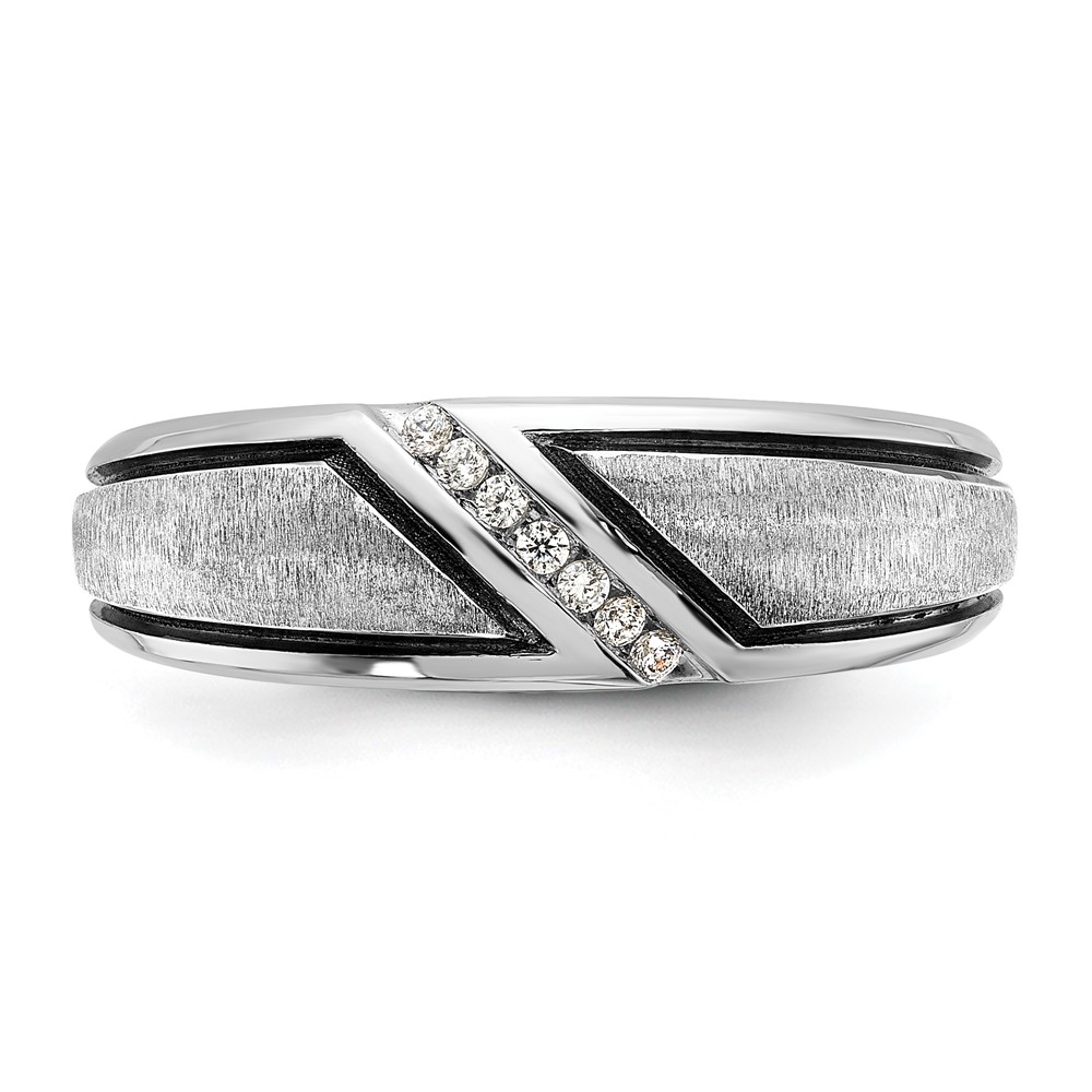 IBGoodman 14k White Gold with Black Rhodium Men’s Polished and Satin 1/15 Carat AA Quality Diamond Ring