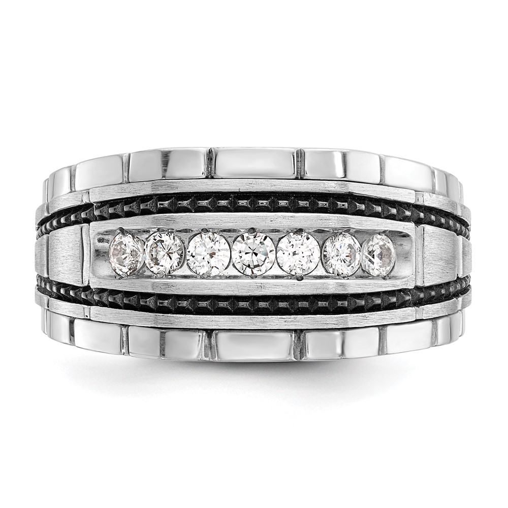 IBGoodman 14k White Gold with Black Rhodium Men’s Polished Satin and Textured 7-Stone 1/2 Carat AA Quality Diamond Ring