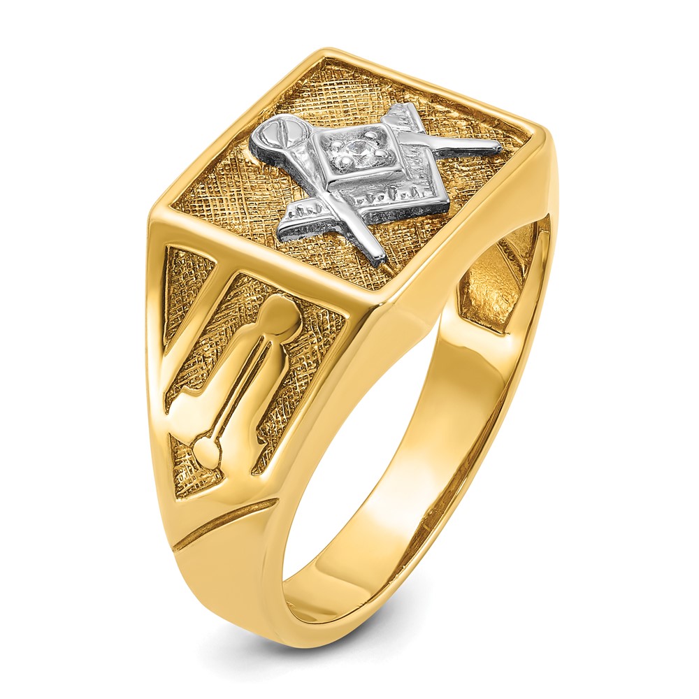 IBGoodman 14k Two-tone Men’s Polished and Textured with Multi-color Enamel and Diamond Masonic Shriner’s Ring