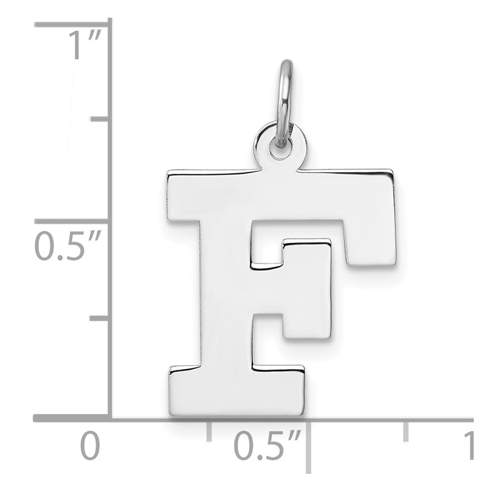 Large Sterling Silver Rhodium-plated Block Letter F Initial Charm