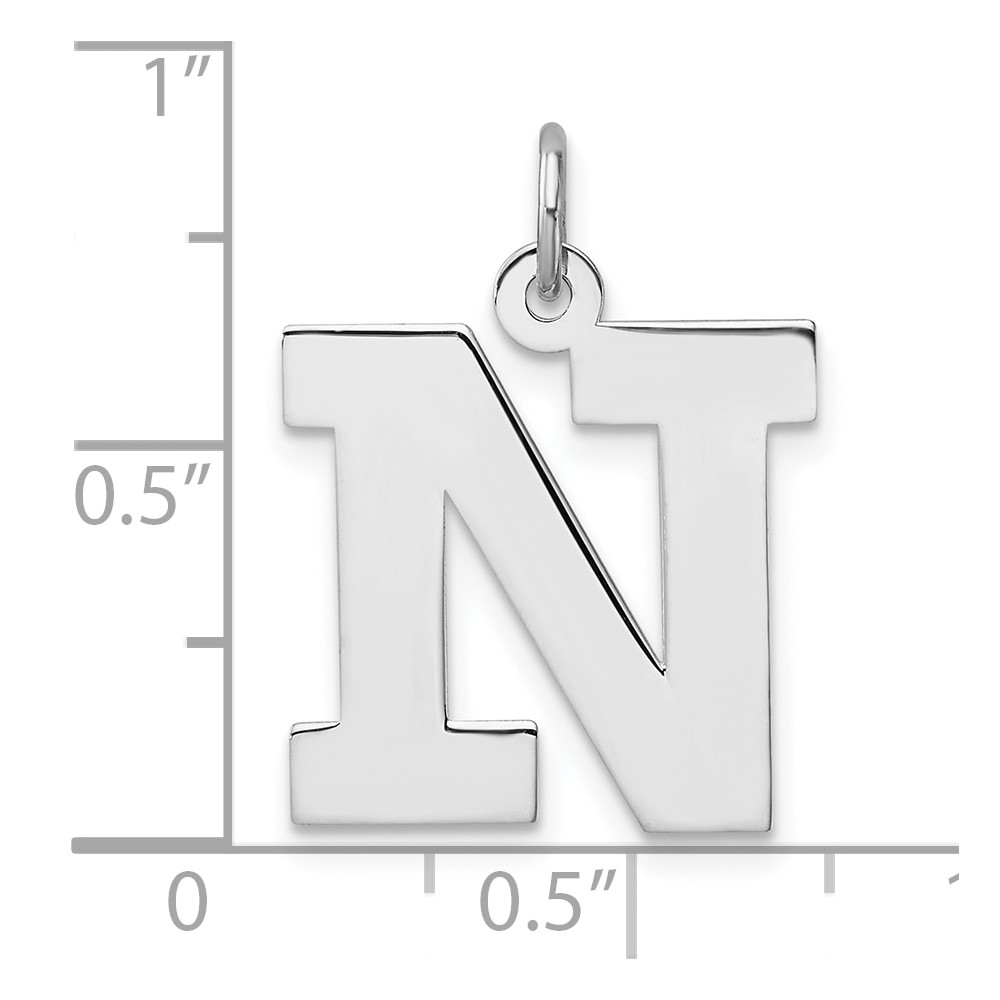 Large Sterling Silver Rhodium-plated Block Letter N Initial Charm