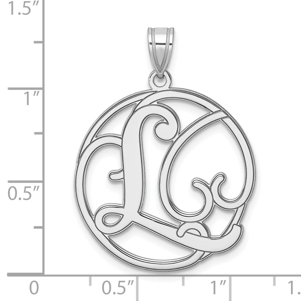 Large Sterling Silver Rhodium-plated Fancy Script Letter L Initial Pendant